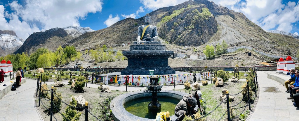 Muktinath is a shared holy site for Hindus and Buddhists. Buddhists visit this site to worship the grounds where Guru Rinpoche, the second Buddha, had stopped to pray during his travel from India to Tibet. There is still a site where his footsteps had been found after he danced with the Dakinis who are known as the manifestation of energy in the form of dancing goddesses. Next to the Hindu temple is the largest stone Buddha statue in Nepal and an ancient monastery. Beyond that is a giant statue of Lord Vishnu.