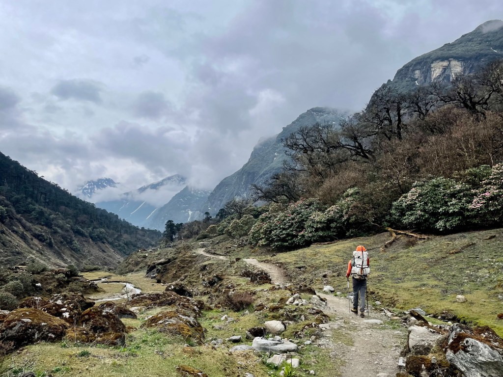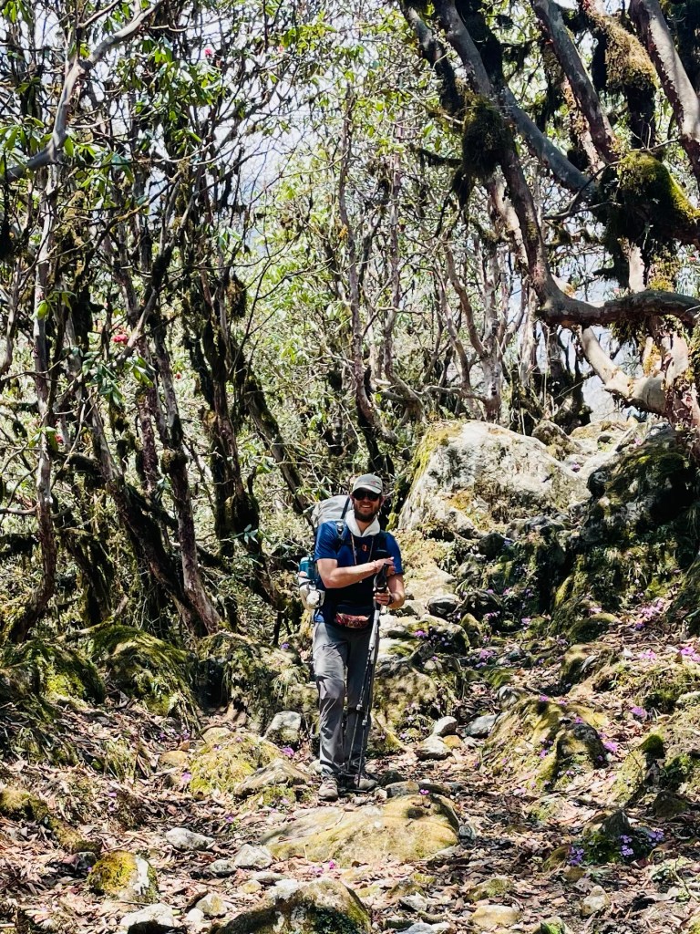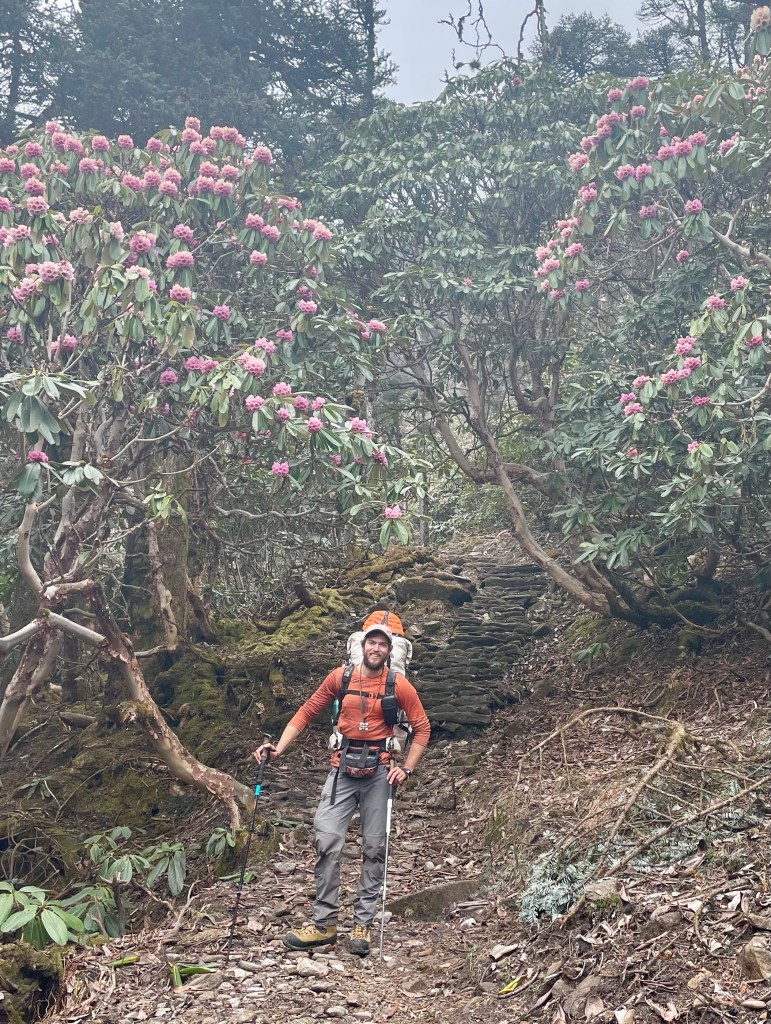 By now the yellow rhododendrons were starting to bloom and the sun was shining. It was one of the first mornings in over a week where we got to put on dry socks and shoes.