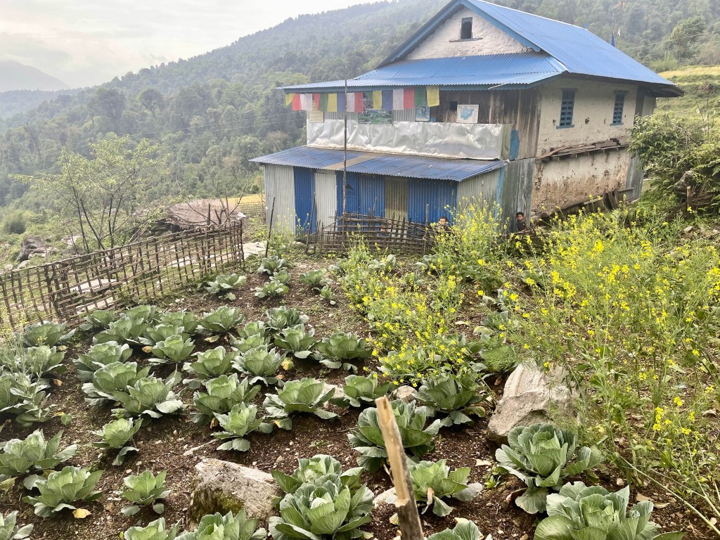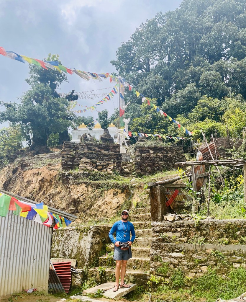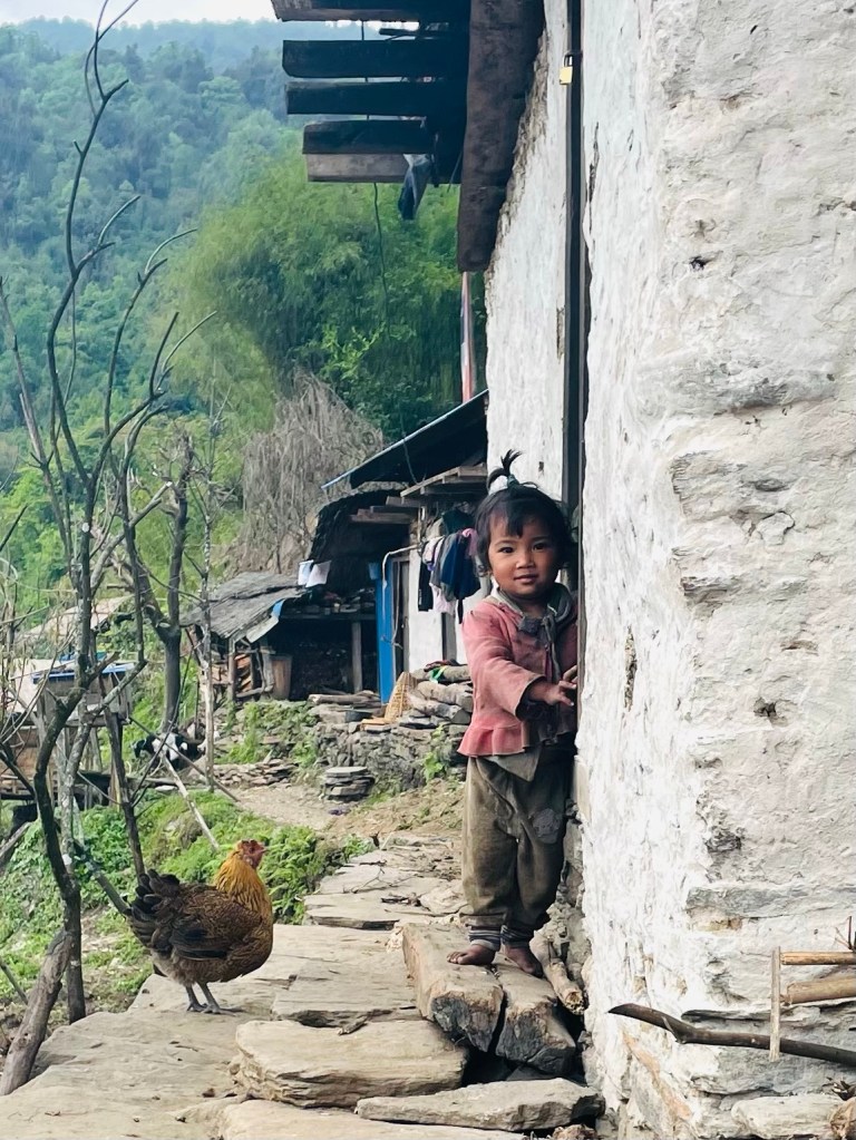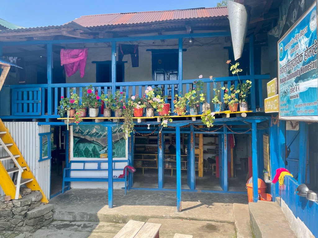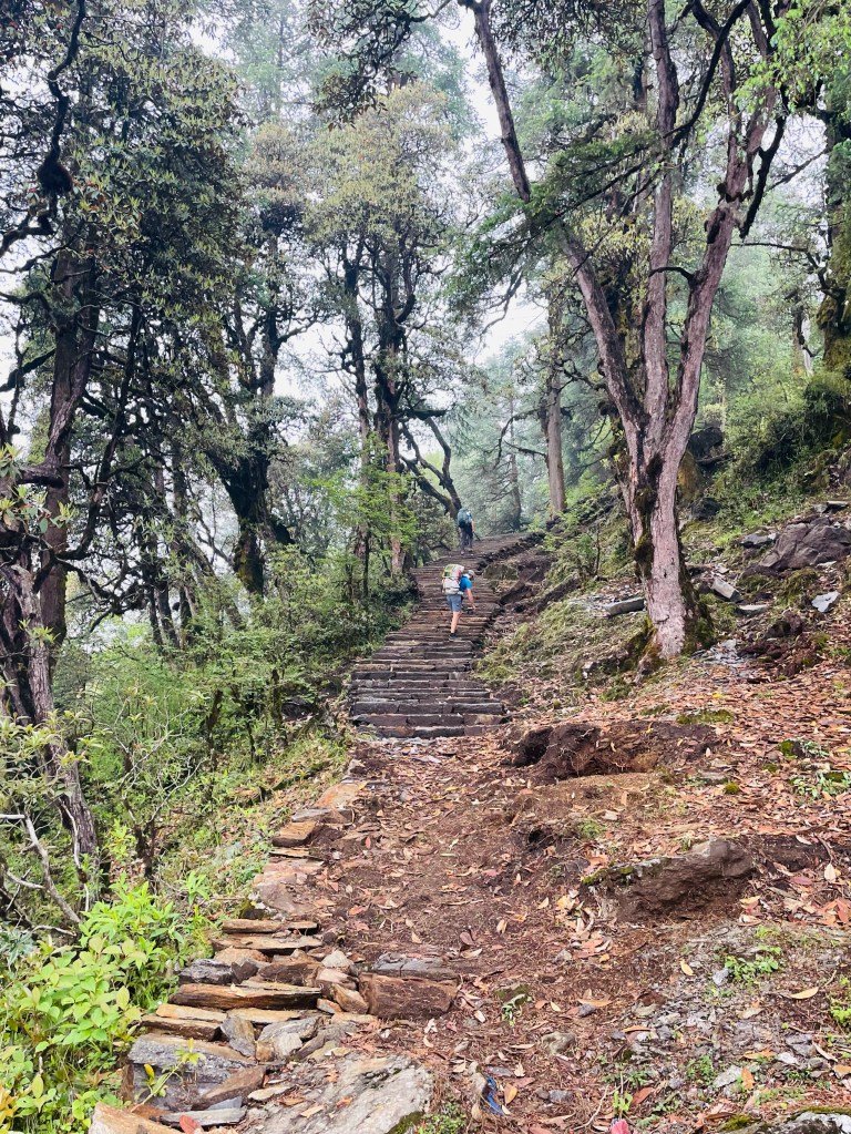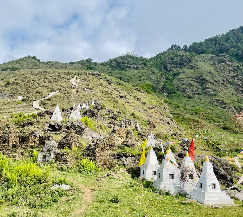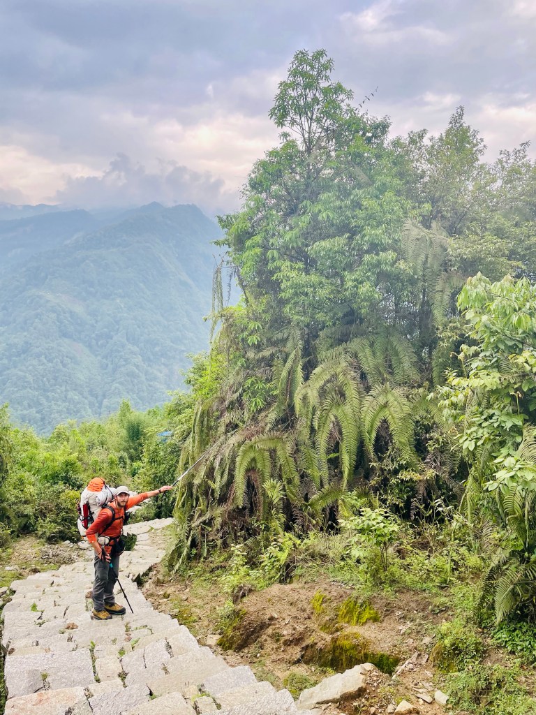 After a nice rest and a morning plunge in the pool we headed up the mountain. The trail was newly built with stone pathways and staircases. We found out there had been a grant from the government to improve trekking in the region and a lot of work had been done during covid. This region was most impacted by the 2015 earthquake so a lot of recent construction has been occurring in the district. This meant many of the buildings and homes in the villages were quite new.