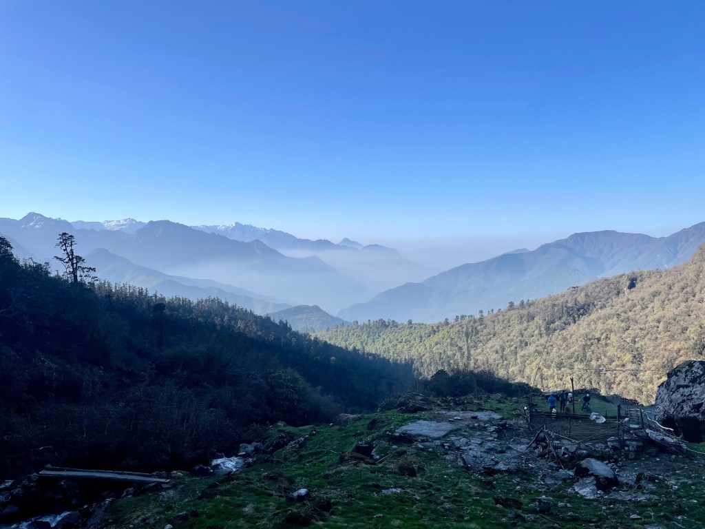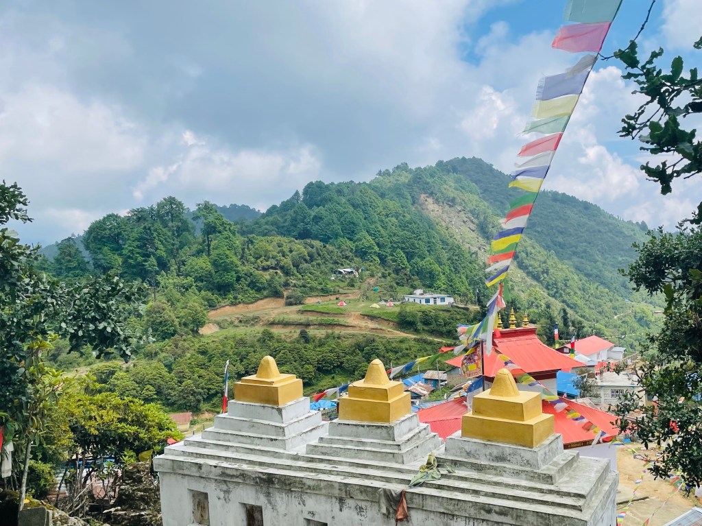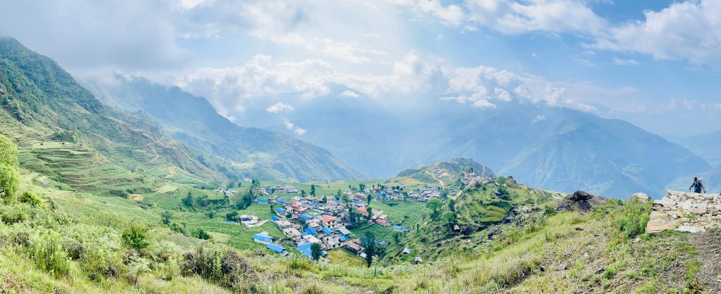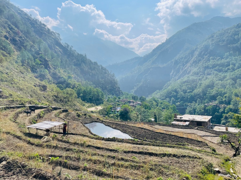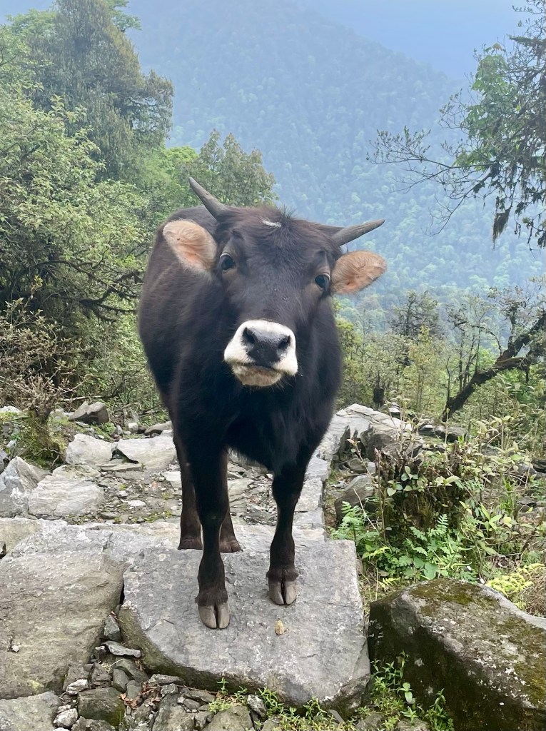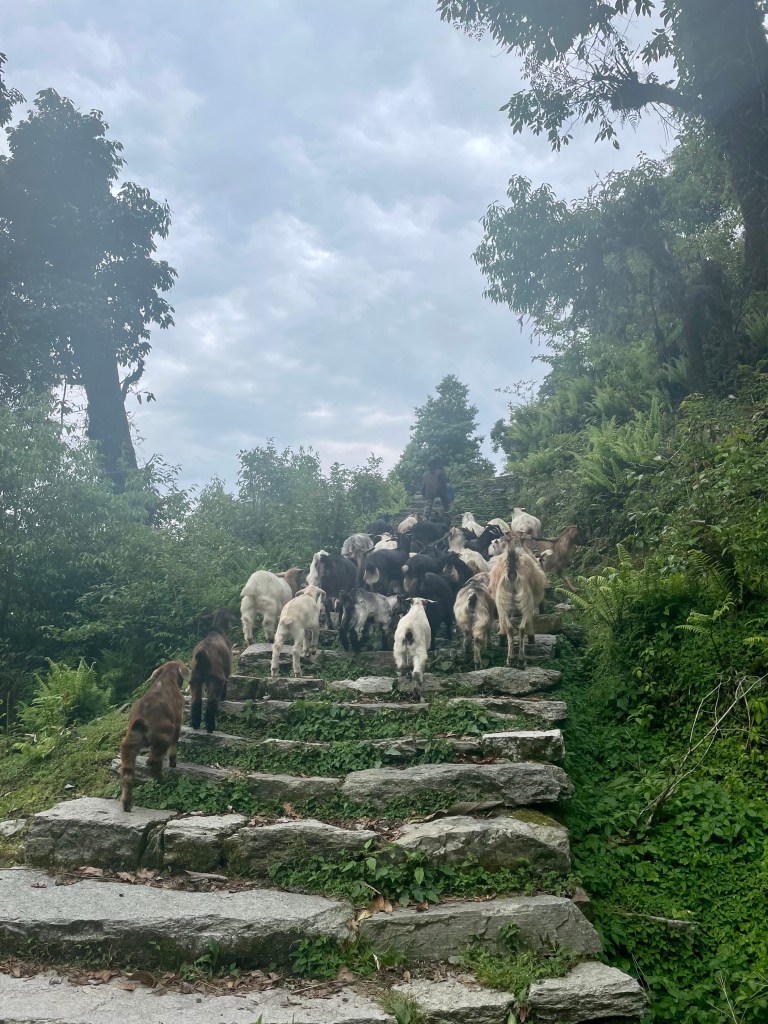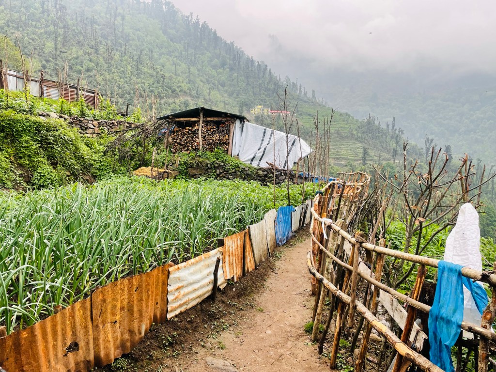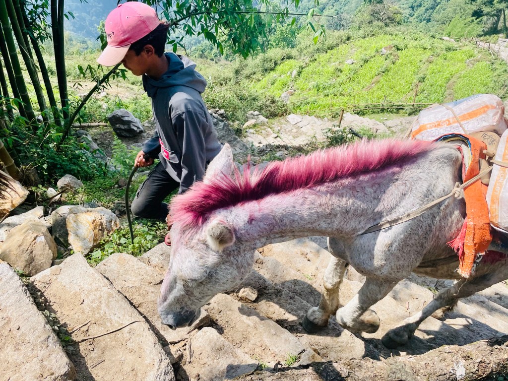 After a nice rest and a morning plunge in the pool we headed up the mountain. The trail was newly built with stone pathways and staircases. We found out there had been a grant from the government to improve trekking in the region and a lot of work had been done during covid. This region was most impacted by the 2015 earthquake so a lot of recent construction has been occurring in the district. This meant many of the buildings and homes in the villages were quite new.