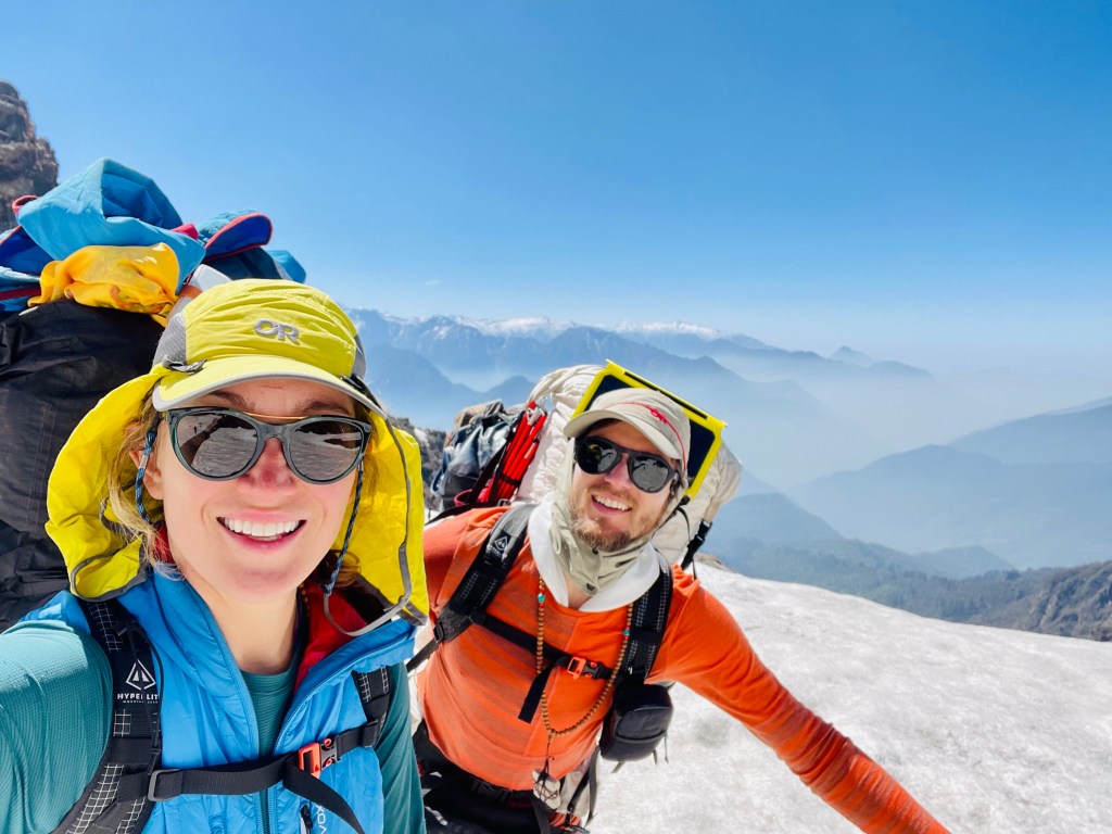 We awoke to clearer skies, shaking snow off the tent and trying to dry out some gear. At this point we had been wearing wet boots and socks for 4 days straight. They were frozen solid so once they were on we wanted to keep moving to keep our toes warm. Our struggle felt like nothing compared to the porters. They had failed to find a decent cave and turned down the offer to bunk up with the other guys in their tents. They eventually decided to lay a tarp over some Rhododendrons and somehow they survived the night in the snow, amazing us with their ability to start a fire in such conditions. The amount of resiliency and toughness in these guys is incredible.