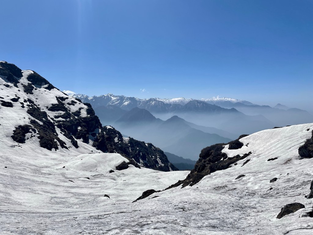 Once we reached Shipton La we could see we were teetering on the edge of the mountains looking down on the foothills. Everything below was shrouded in clouds with only the tallest hills peeking up. From here it was 9,000 feet down to our intended destination of Seduwa.