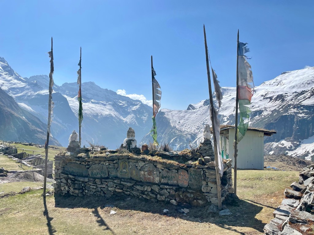 Norbu pulled out a bottle of chyang (rice beer) during our second break and we realized that was the only sustenance he had brought for the entire 5 days. Once we arrived to the kharka we also discovered they hadn’t brought any shelter. This was Norbu’s first time doing a porter job but Mingma had experience so the group assumed he knew better. Also, they he had both done this trail before. Our group was likely going to be short on food, as we had figured 4 days for this section, but now expected at least 5 due to snow, so we couldn’t scrounge much. They decided to hike back to Hongon that evening leaving around 5 and getting back by 9 with more food and a tarp. We took it as a good omen that we had not seen our German friend, Matisse, coming back down because of snow conditions so we planned to be on the trail by 7am.