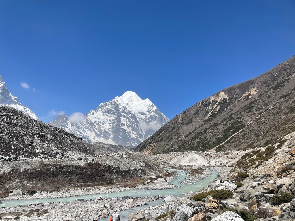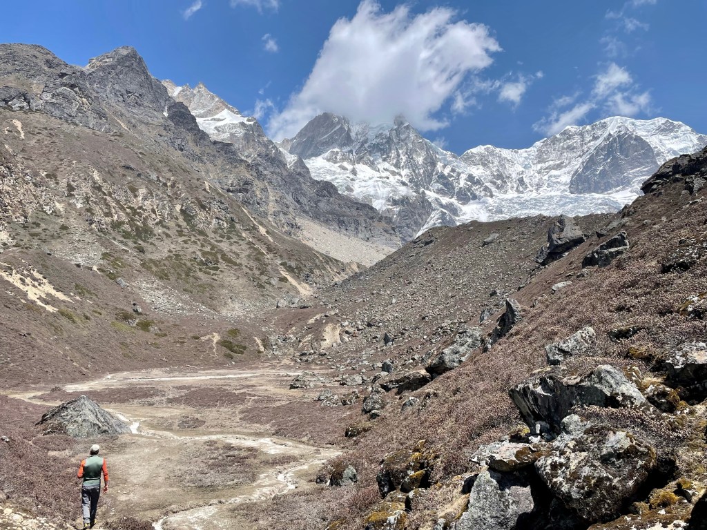 The two of us were craving some exploration on our rest day so we hiked up to 15,500 ft to check out Langmale Glacier Lake. This glacier lake was the site of a Glacial Lake Outburst Flood (GLOF) in 2017. Large rockfall from a nearby peak precipitated an avalanche throwing large chunks of glacier into the lake. The waves from the lake washed over the moraine into the valley moving giant boulders and scouring the land between Langmale and Yangle Kharka. This sort of incident is among the most common and worrisome results of climate change in the Himalaya.