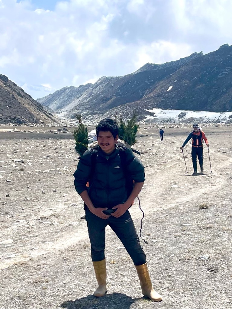Views aheadViews from behindPasang, another impressive porter with magic gold boots. He gathered some juniper for pujas and strapped it to his pack to share with our next tea house.