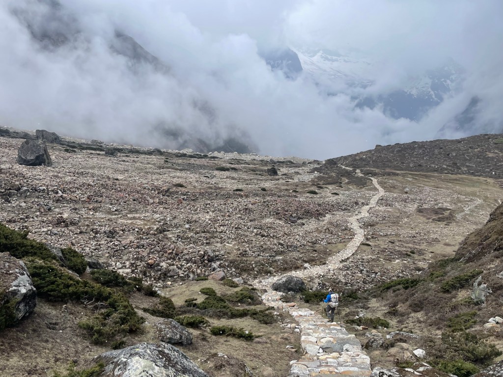 We said goodbye as the other 3 went up and we went down. The hike down took about 6.5 hours and the second half was accompanied by rain, then hail, and a 2 inch covering of slush to walk through. A rough day when you are sick but getting to breathe at 11,000 feet again felt like sea level. We both decided that for some divine reason unbeknownst to us, we weren’t meant to do the Sherpani Col section this time. After discussing with the group before parting ways we made a plan to meet back back up in Namche 10 days later.
