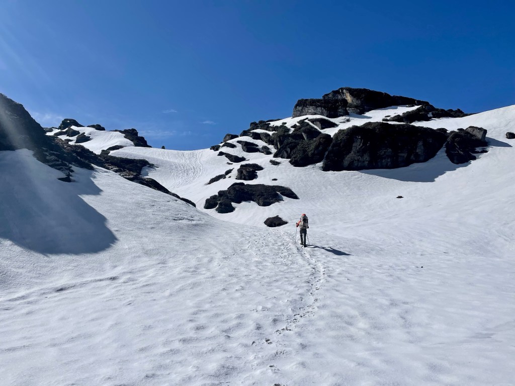 -Nervous, because we recently learned 2 groups ahead of us had to turn around up high because of too much snow. Not to mention 2 previous GHT hikers had to helicopter out when they couldn’t find their way through the jungle in previous years.