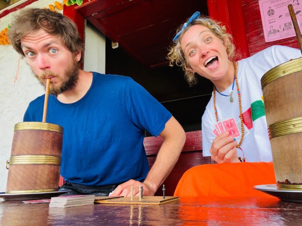 Sarah enjoying a tongbaNepali kitchen, where the magic happens.JasmineTom crushing Sarah in an epic cribbage tournament.
