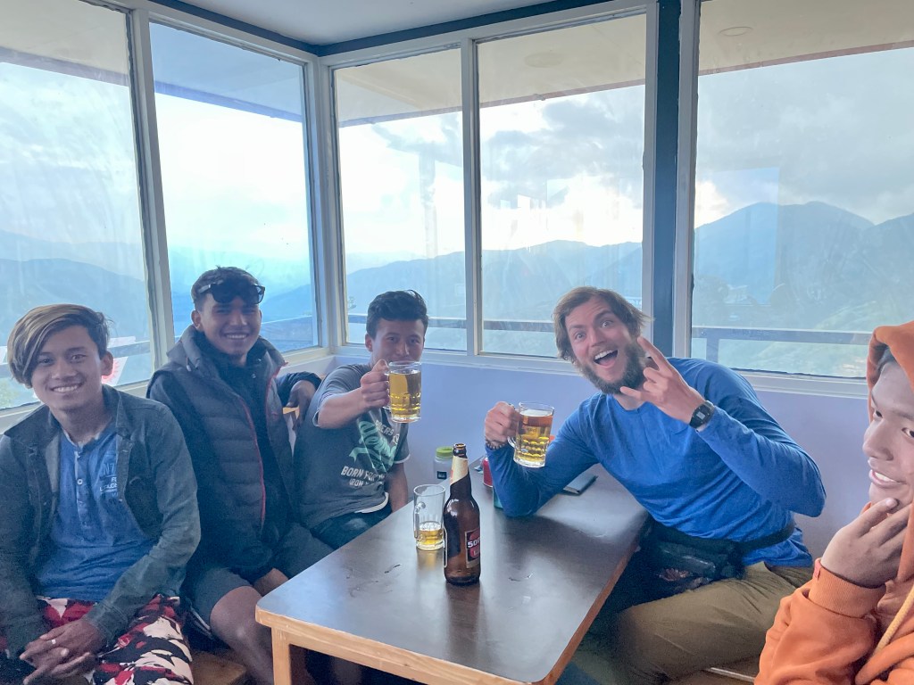The two of us walked around checking out the area. We stopped in to have some tea with the local ladies and the porters our teammates had hired. Once the rain moved back in we hopped in the tent to watch a movie, which felt odd with cows munching grass by our heads. Once the local guest house owner returned, who was affectionately called Aunti, we played a couple of rounds of cribbage and enjoyed some Himalayan Dragon beer inside her place.