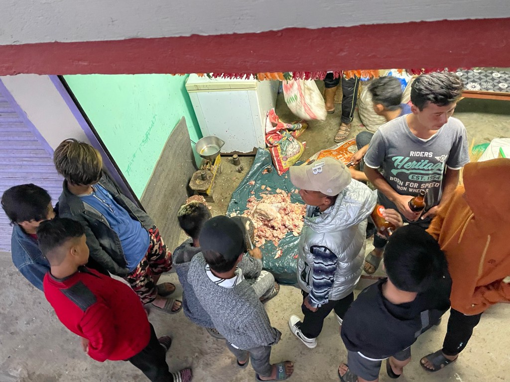 We worked out logistics for our jeep to Tumlingtar and booked our earliest flight to Kathmandu which wasn’t until Saturday so we stayed a second night in Num. For a couple hundred rupees we got a bucket of hot water and indulged in the closest thing to a real shower we’ve had in over a month. Then we relaxed on the patio playing cribbage, drinking tongbas and watching the neighborhood kids play on the grassy field in front of the guest house. First a group of kids playing with a white rabbit, then another group who went straight into a show no mercy wrestling match, all under 10 years old. The streets were busy, more than normal Nima said, because if the upcoming election. Num was a sweet village and a nice place to relax.