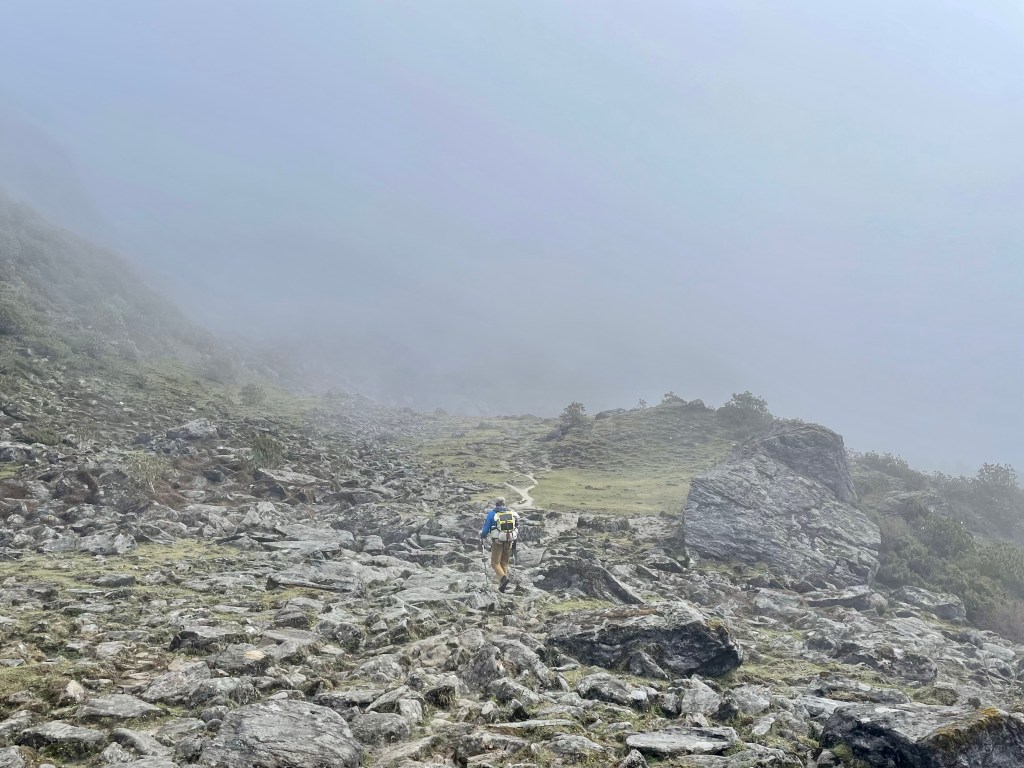 Hiking up through the mist