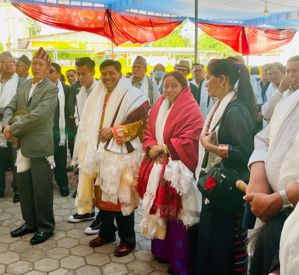 After several hours performing the bride’s families’ ceremonies Singhi and Diki made their way over to our side. Shaman’s and monks were performing the traditional ceremonies of Singhi’s home village. Incense, mantras, songs, cymbals and bells filled the air as they made their way into the building.