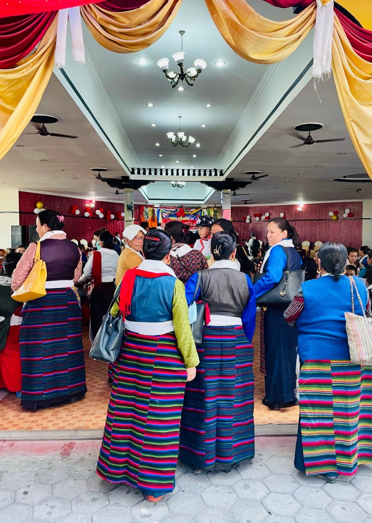 The women wearing classic Tibetan dressesMike, Tanner and Gombu attended the wedding as well.