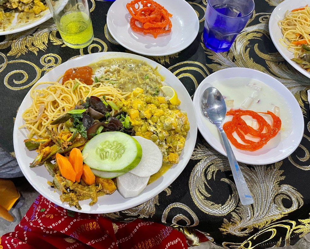 The dinner was segregated similar to the wedding parties: a line for men and a line for women. We lined up and had a plethora of delicious food options to scoop from.