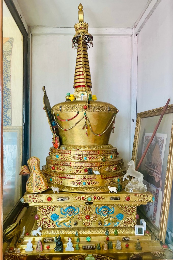 Alter for the gods This alter which belonged to his previous reincarnation had been carried from Tibet after the 1959 Tibetan Uprising.