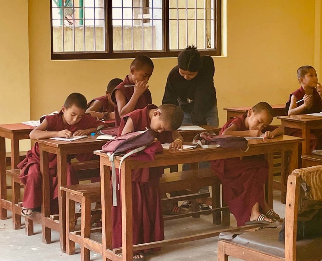 The white building is the Gompa.Inside the Gompa where the Rinpoche and his students pray for 3 or 4 hours each morningVisiting the school children at the monastery Swayambhu is also called the monkey temple for a reason